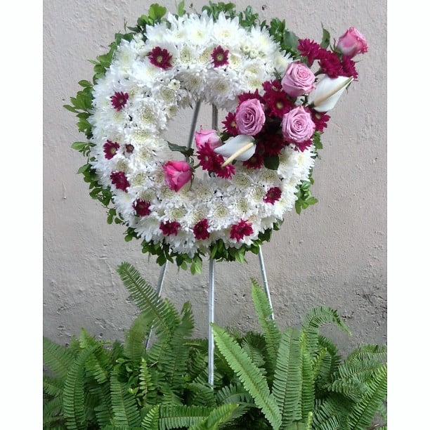 Open ring circular wreath with rose spray