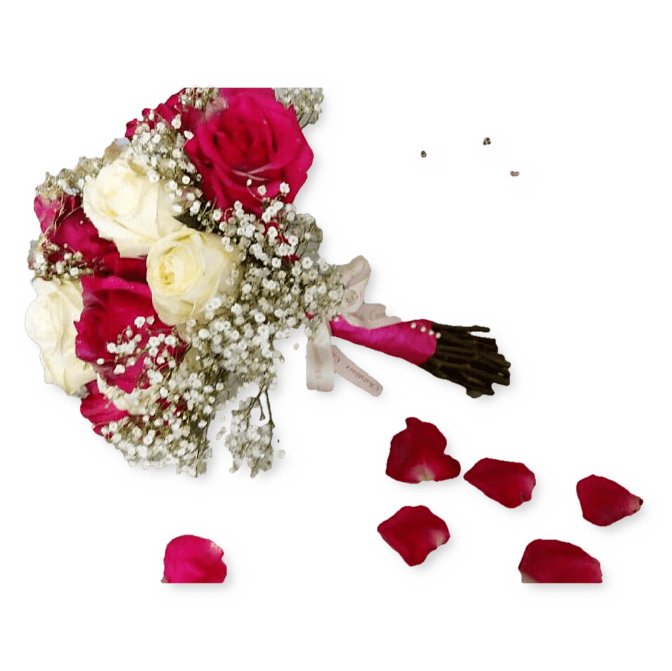 standard Cream and red roses with gypsophilia hand tied bouquet