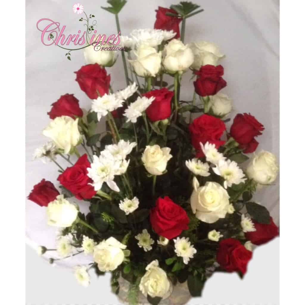 Red/White roses with chrysanthemums